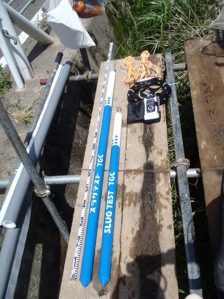 スラグ式とは、回復法や注入法などとは異なり、スラグを投入した際のボーリング孔内の水位変動を測定し透水試験を実施するものです。