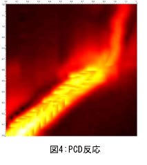 図1 ラインスキャン 異常反応(赤丸)とPCD反応