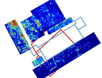 図5 GPR探査の結果、遺構の存在が確実なエリアは2016年発掘が行われ多くの部屋が発掘された。