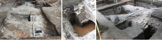 2016年、pulseEKKO地中レーダ探査結果に基づいて発掘が行われました。この発掘で、GPR探査の正確性が認められました。表土を撤去すると、すぐにいくつもの部屋の壁の上部が見え始めました。詳しい解析の結果、これらの壁はシナゴーグの中でも複雑な作りの浴室のものと断定されました。(図5)この探査の成功をうけて、2016年夏、さらに2グリッドの探査が行われました。2017年の夏には発掘も予定されています。pulseEKKO地中レーダシステムは、深い深度まで探査が可能であり、また遺跡、空洞、墓あるいは埋没した古代の道路などの可視化に優れているため、考古学の専門家の方々に好まれています。ヴィルナのグレイトシナゴーグでは、建物は崩壊してしまいましたが、消失してしまったわけではなく、ヴィルニアスの貴重な文化遺産として存在し続けるのです。