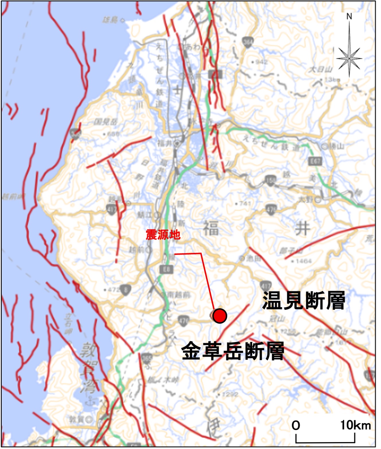 南越前町瀬戸周辺では、以下の活断層が確認されています。