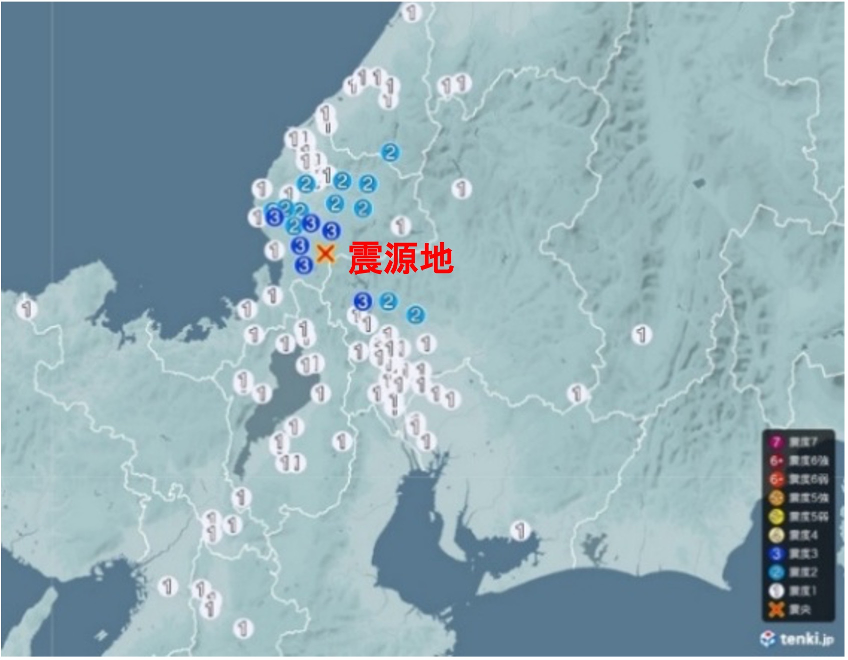 - 震度3を観測した地域:越前市、池田町、南越前町、越前町、揖斐川町(岐阜県)