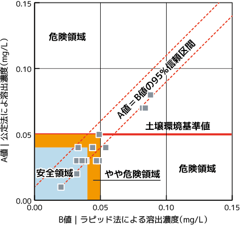 ▲ラピッド法と公定法の関係図(相関性を実測検証)