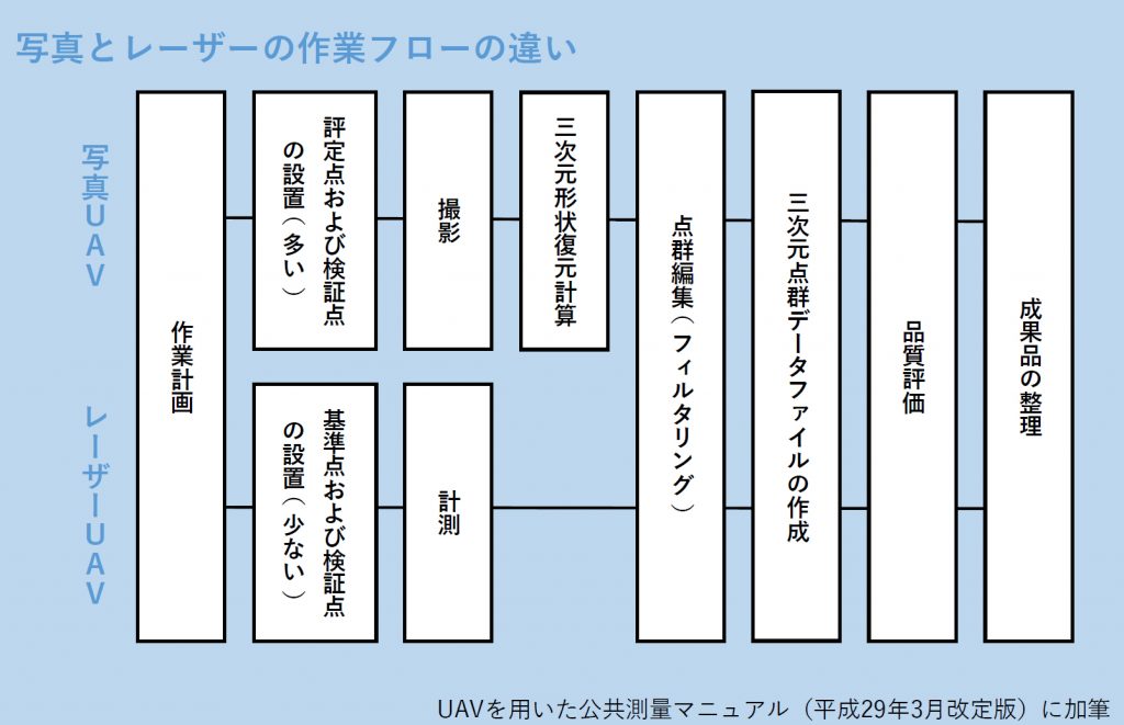 - レーザーは二次利用や精度が優位で、成果提出まで迅速にできる。